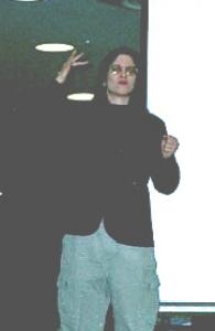 Brenda Schertz in front of Thad Martin's Articulatus.